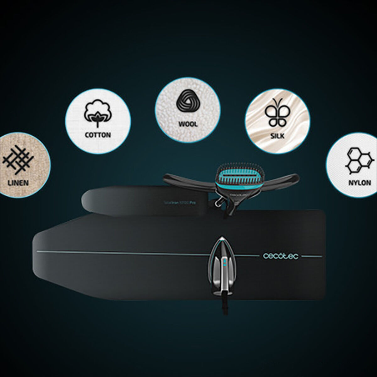 The Total Iron 10100 Pro by Cecotec is a steam station designed to deliver professional performance at home or in demanding environments, standing out for its versatility and power. It features a 2200 W power and a constant steam pressure of 5 bars, which together with a flow of 220 g/min of continuous steam ensures superior efficiency to quickly and evenly remove wrinkles. This unit incorporates a 4-in-1 system that combines a professional steam station, a 360º rotating sleeve ironing board, vertical and horizontal irons, making it easier to care for all types of fabrics and garments. Additionally, its professional board is equipped with suction and inflation, protecting materials and optimizing ironing. The temperature adjustment system automatically adapts to five different fabrics —Nylon, Silk, Wool, Linen, and Cotton— ensuring the best results without risking damage to garments. It also features a triple water purification system that extends the device’s lifespan by preventing lime scale issues. For greater autonomy, it includes a boiler with a 1.2-liter capacity for continuous steam and a removable main tank of 2.8 liters, along with an independent tank that collects water from the anti-scale self-cleaning system, facilitating maintenance. The intuitive LED screen displays useful information such as steam readiness, main tank status, and self-cleaning tank status for easy and controlled use. Its patented foldable design reduces occupied space with a single pedal movement, easing storage and transport. It also includes an adjustable and detachable hanger for vertical ironing and manual controls to adapt to every need. Overall, the Total Iron 10100 Pro combines power, advanced technology, and versatile functionality in one device, positioning itself as a comprehensive solution for those seeking professional results in garment care.